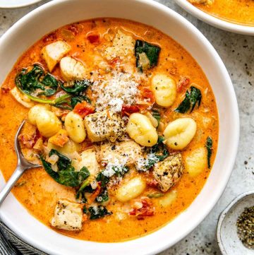 Marry Me Chicken Soup is a creamy, soup made with tender chicken, rich Parmesan cheese, and some savory sun-dried tomatoes, all of these combined in broth with delicate orzo pasta. This soup is a fusion of comforting flavors, with fresh spinach adding a pop of color and nutrition. The combination of aromatic herbs and a touch of heat from red pepper flakes creates a harmonious balance that’s irresistibly cozy.